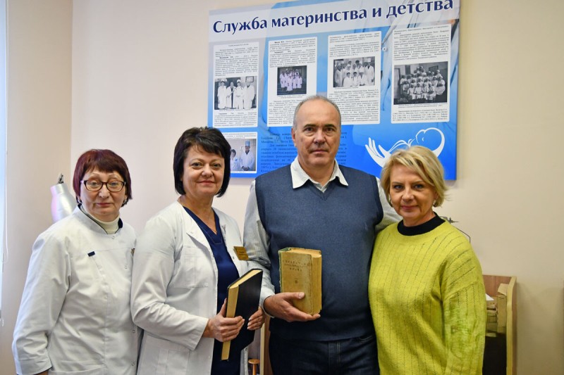 На одном из стендов первого зала представлены семейные династии медиков, работавшие ранее и работающие сегодня в Волковысской ЦРБ. Здесь также — многочисленные награды коллектива за победы и призовые места в различных состязаниях и конкурсах. В первом зале можно увидеть и медицинскую литературу прошлых лет, подаренную ветеранами ЦРБ. Среди книг есть уникальные издания 40-х годов. Во время нашего визита ветеран акушерско-гинекологической службы Владимир Рыбчинский подарил музею несколько книг, которыми в своей работе пользовался еще его отец, много лет посвятивший Волковысской ЦРБ.