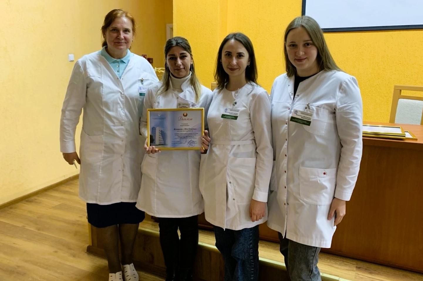 Победители получили дипломы, денежные призы и возможность пройти во второй этап – интеллектуальную игру. Она состоялась в уютной атмосфере областной филармонии, где молодых специалистов торжественно посвятили в профессию. Вместе с ними были наставники, главный врач Александр Романчук и председатель профкома Наталья Янковская.