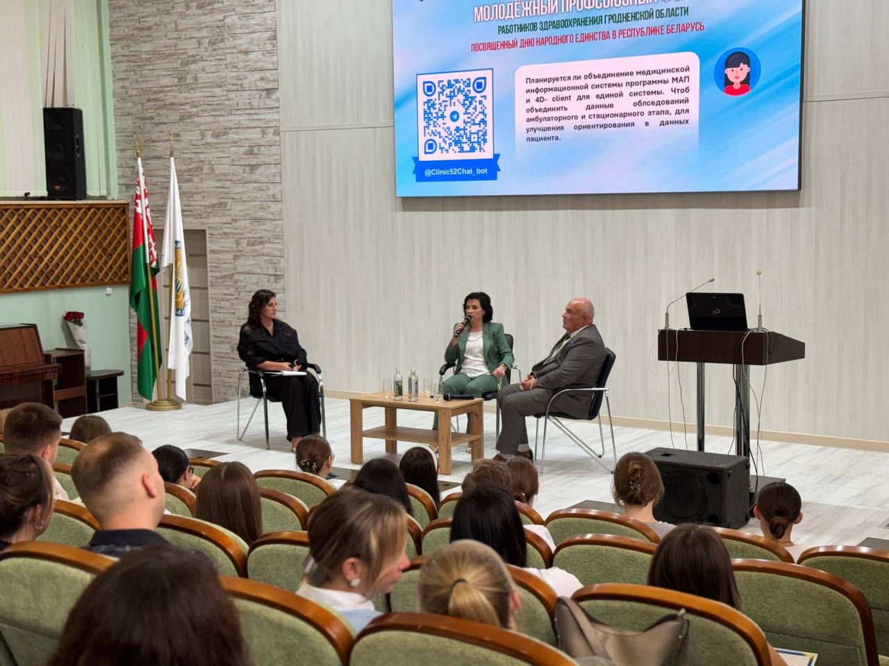 В диалоговой части форума приняли участие начальник главного управления здравоохранения Гродненского облисполкома Людмила Кеда и председатель областной организации Белорусского профсоюза работников здравоохранения Владислав Голяк. Обсуждение охватило широкий спектр тем – от перспектив развития региональной медицины до роли молодых специалистов в укреплении национального единства.