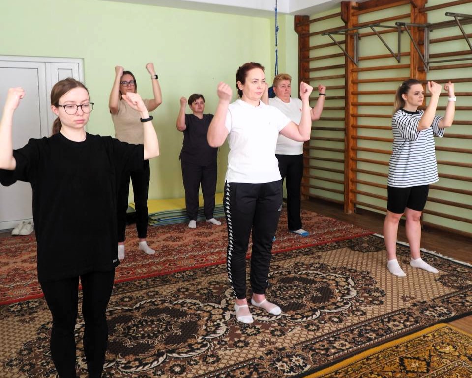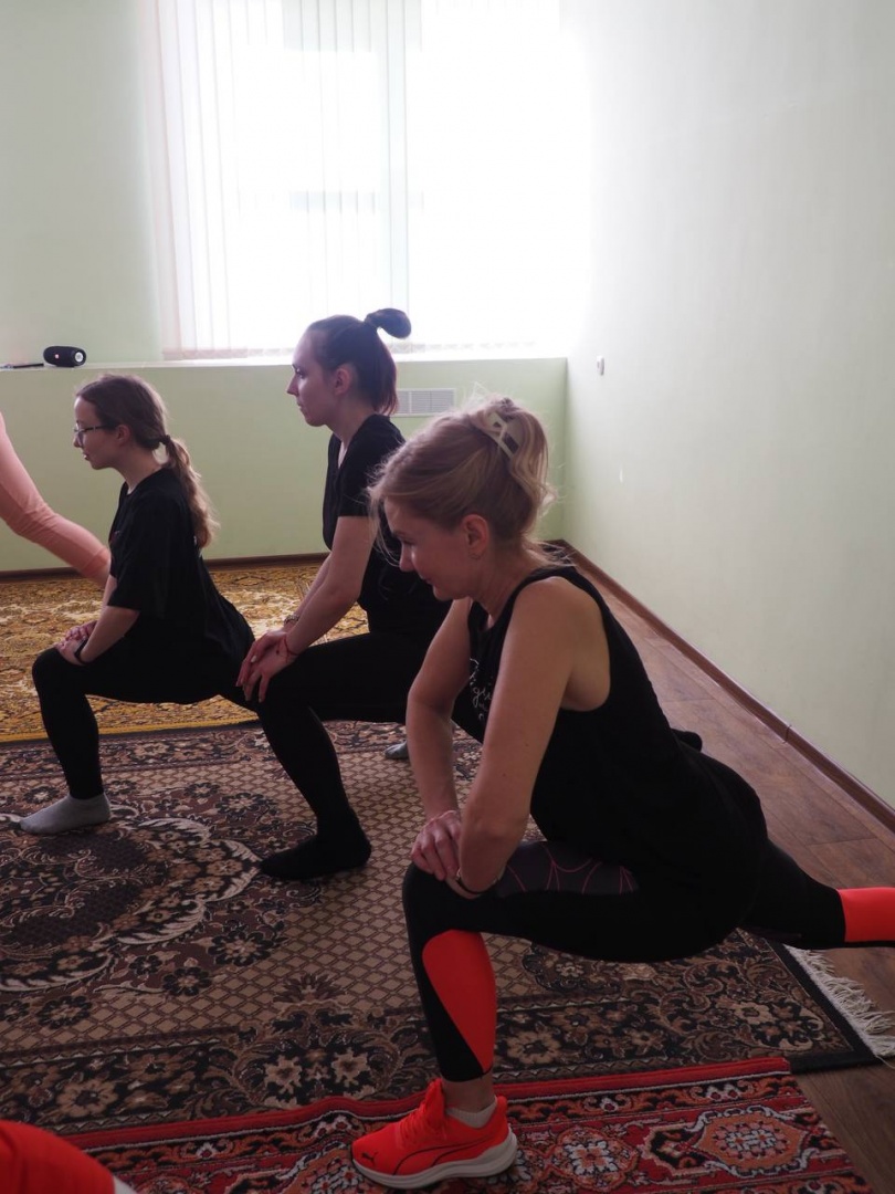 Занятия проводит Ирина Курлович, психолог наркологического отделения лечения и реабилитации лиц, страдающих зависимостями. За ее плечами много лет регулярных тренировок, и она с большой охотой согласилась помочь коллегам.