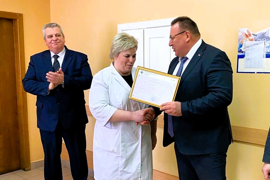 Председатель Белорусского профсоюза работников здравоохранения Вячеслав Шило и председатель Гродненской областной организации БПРЗ Владислав Голяк посетили Кревскую и Войстомскую больницы сестринского ухода с благотворительной миссией.