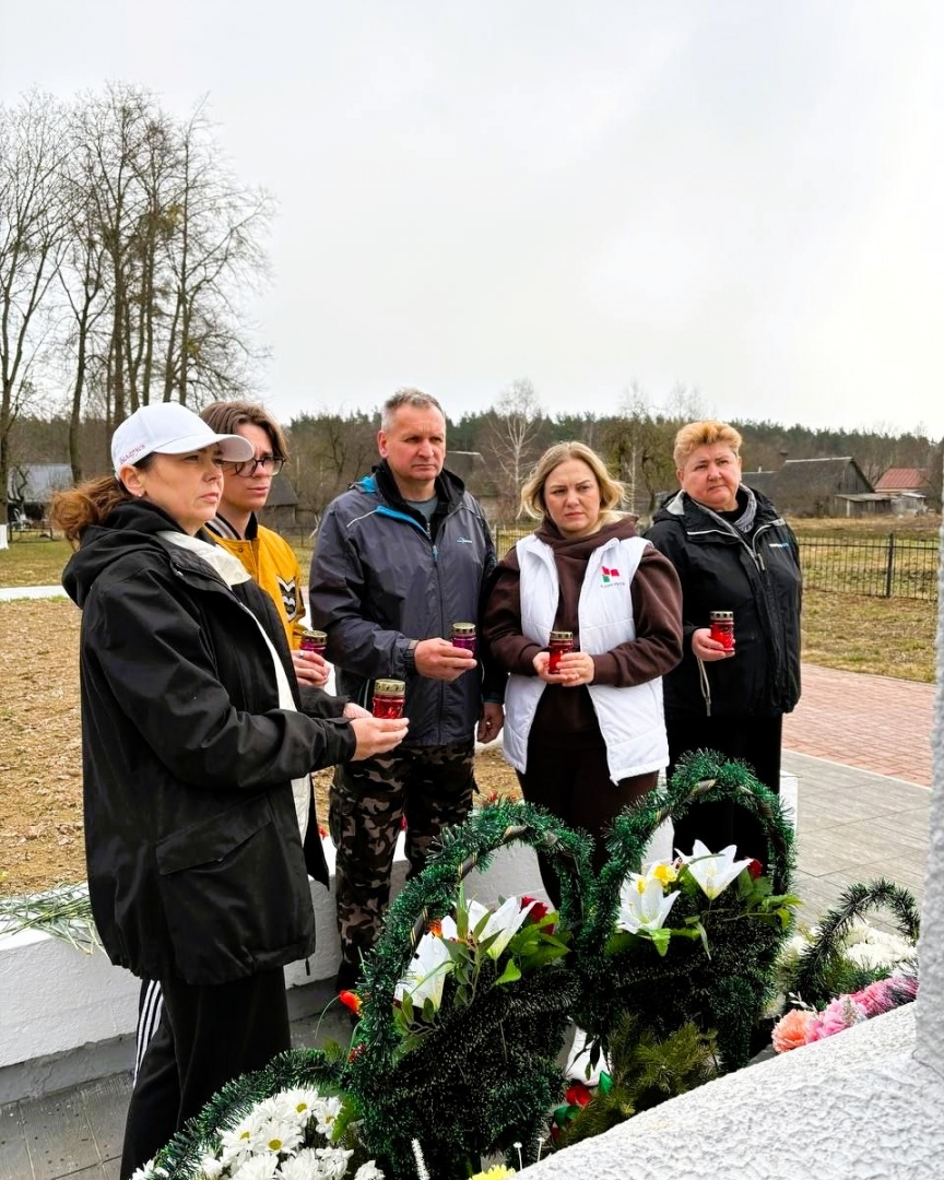 В 2022 году на этом месте появилась Аллея уничтоженных деревень Гродненского района в рамках областного проекта «Память. Единство. Победа». Председатель профкома посчитала своим гражданским долгом приехать сюда снова, уже вместе с коллегами. Медики зажгли свечи и почтили память погибших минутой молчания.