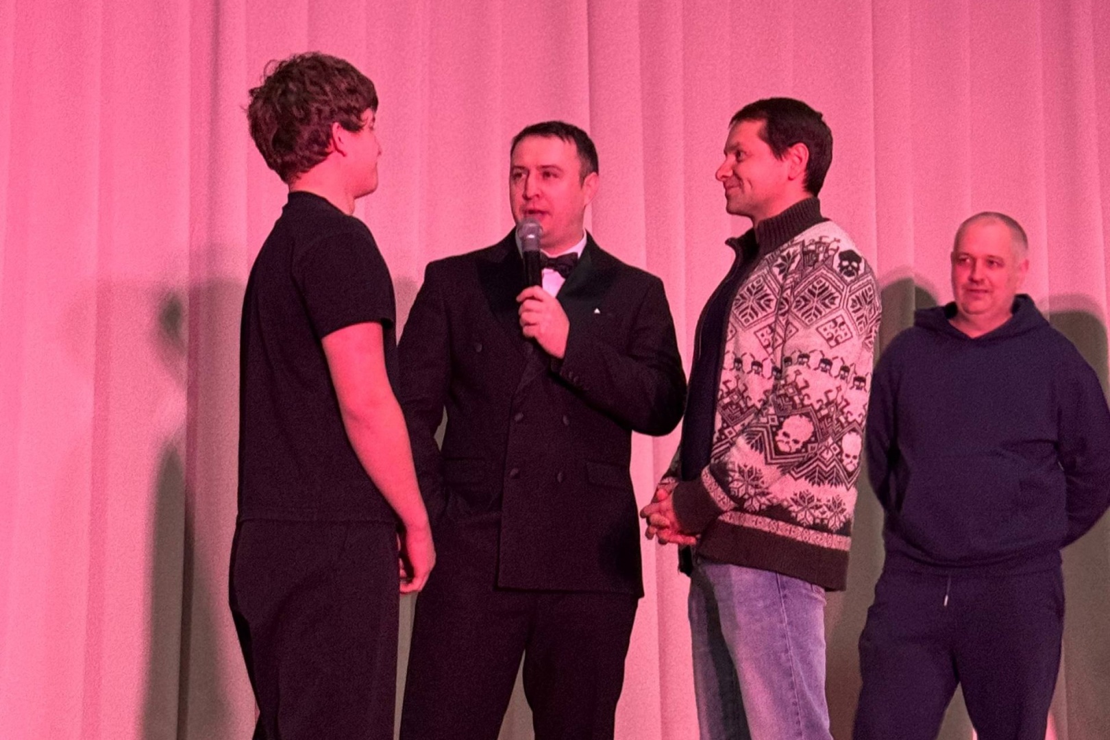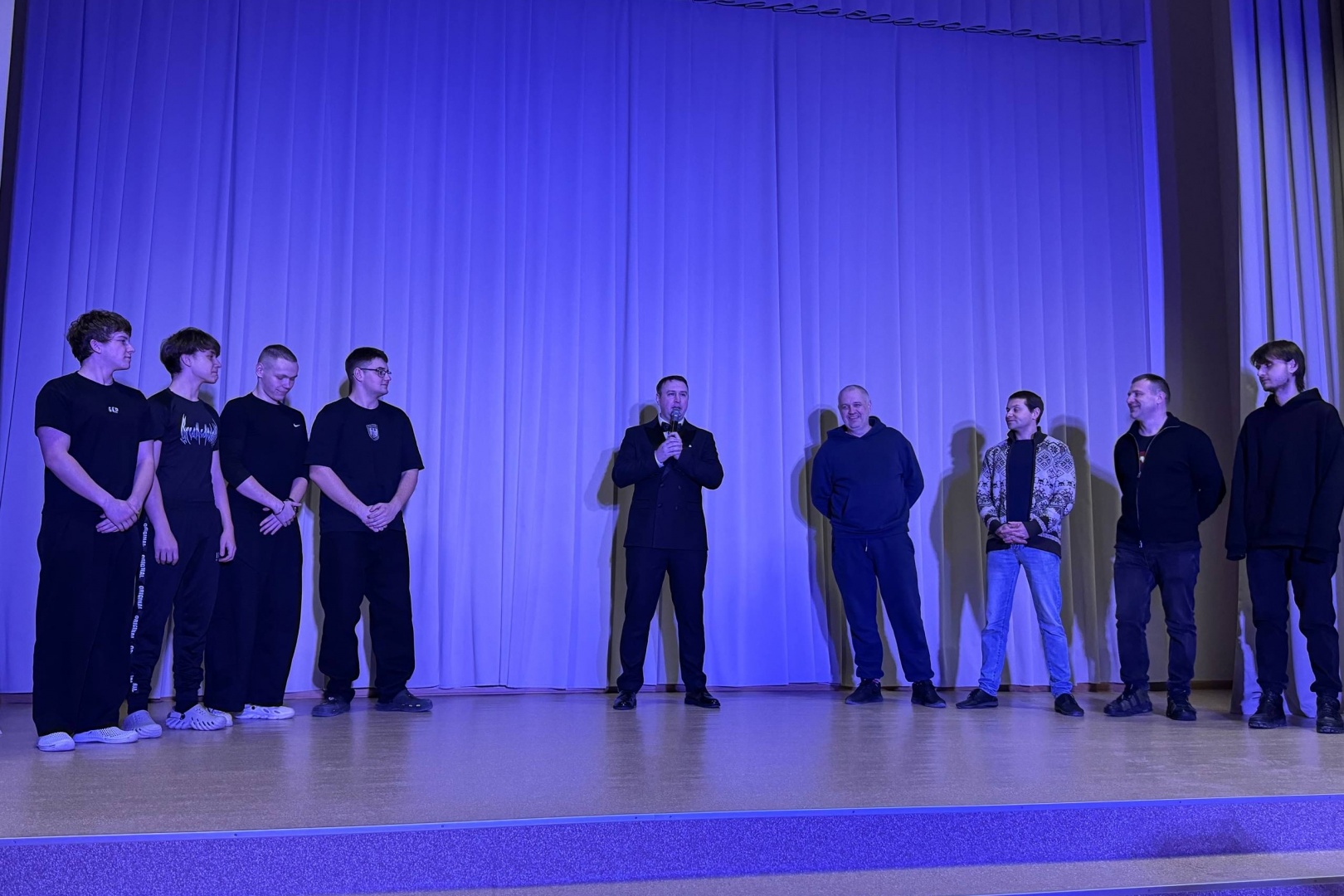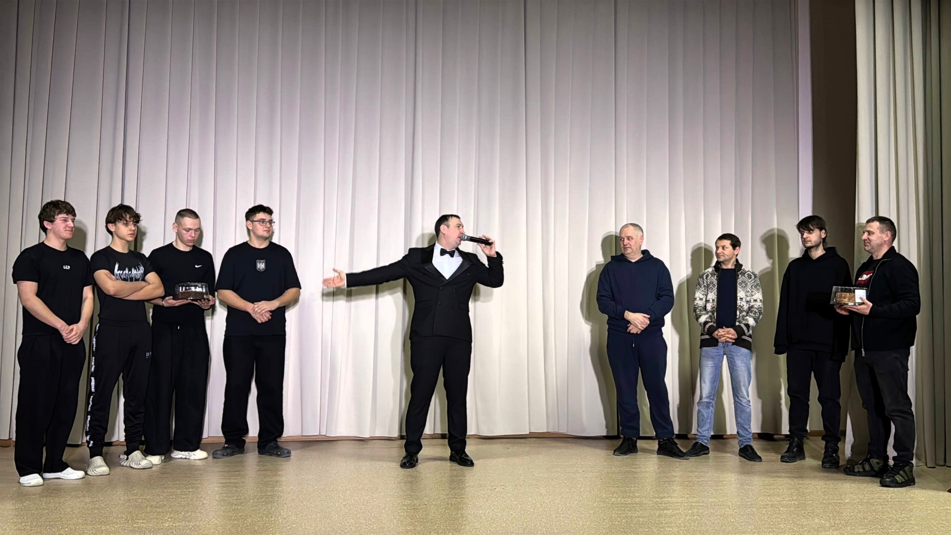 Программа для сильного пола получилась динамичной и разноплановой: участникам предстояло проявить силу, смелость и, конечно, эрудицию. В числе испытаний было даже поднятие гири на время. Интересно, что в составе команды работников выступил председатель профкома сотрудников колледжа Руслан Ивашко. Он отметил значимость таких встреч: