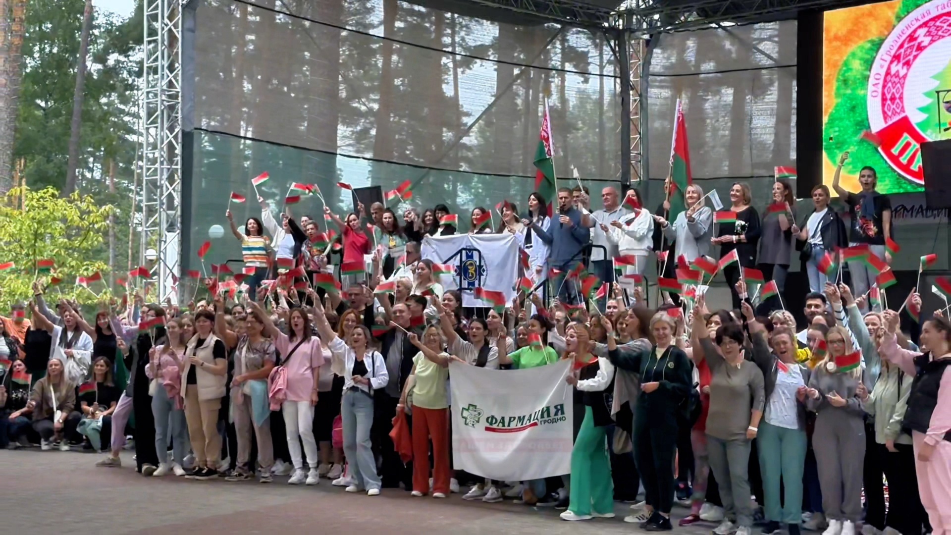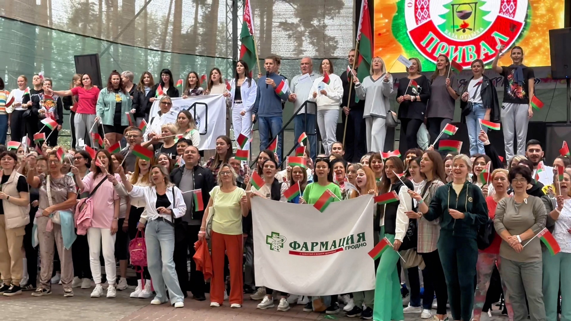 «Фармация без границ» – это одно из брендовых мероприятий, которые профком предприятия организует совместно с администрацией. Традиционно фестиваль поддерживает Гродненская областная организация Белорусского профсоюза работников здравоохранения, в этот раз приветствовал участников ее председатель Владислав Голяк. Он отметил сильный корпоративный дух членов "первички" Гродненского РУП «Фармация» и вместе со всеми принял участие в съемках ролика.
