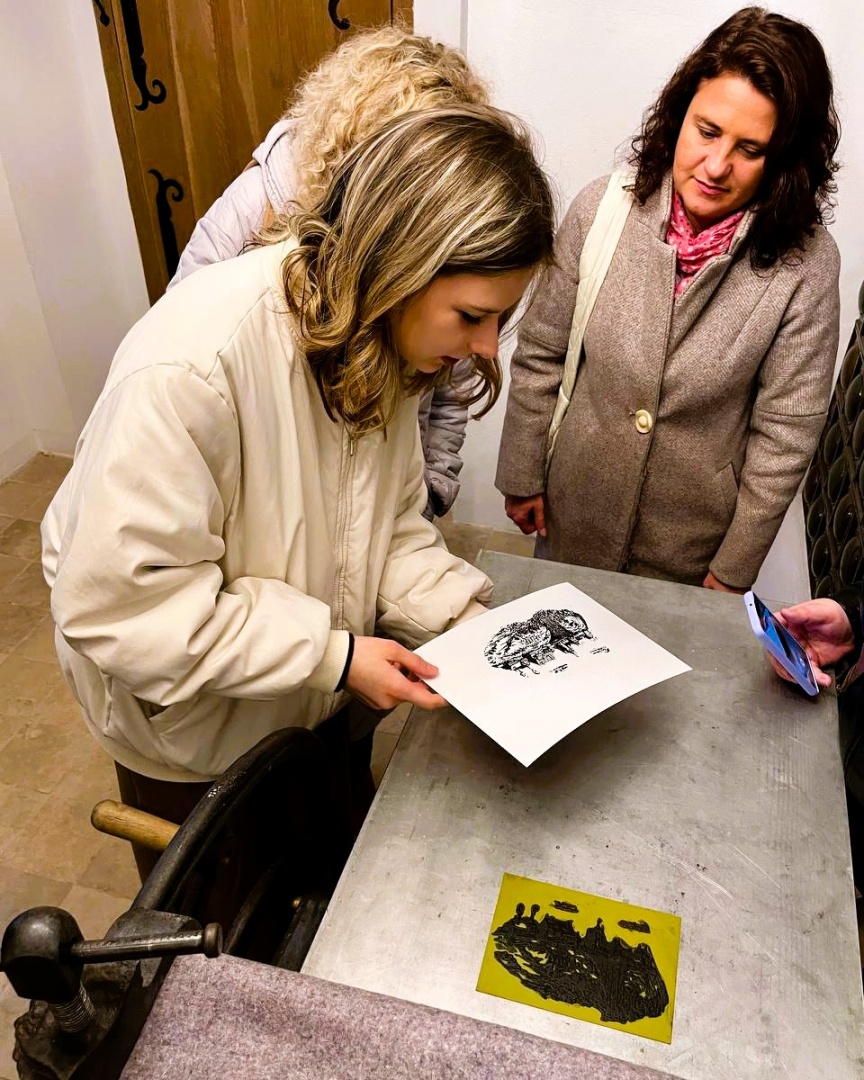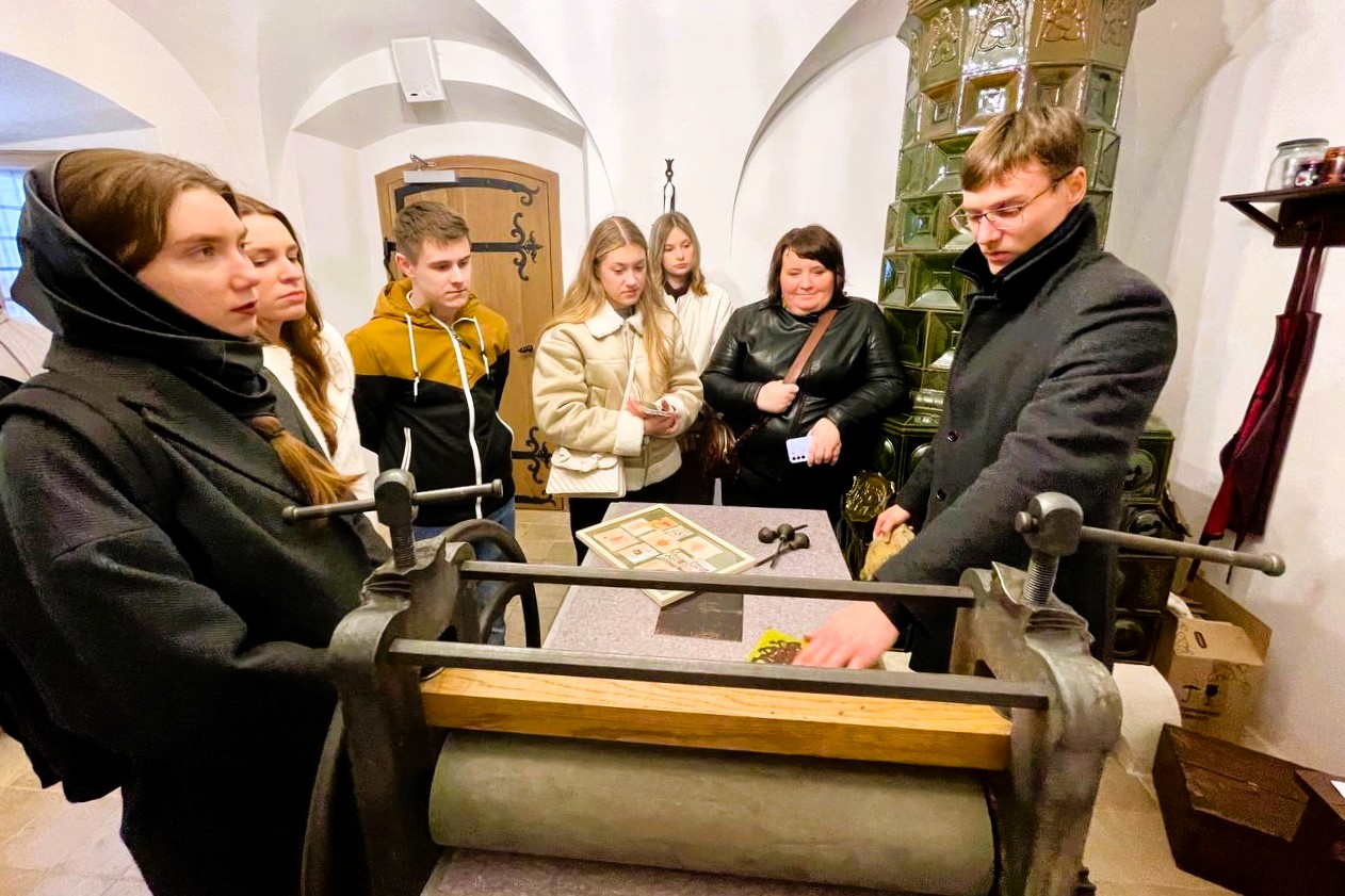 Каждый участник создал собственную гравюру: кто-то выбрал силуэт старинного Гродно, кто-то – портрет Стефана Батория. Получилось красиво и одновременно символично – ведь мастер-класс стал частью церемонии посвящения молодых специалистов в профессию.