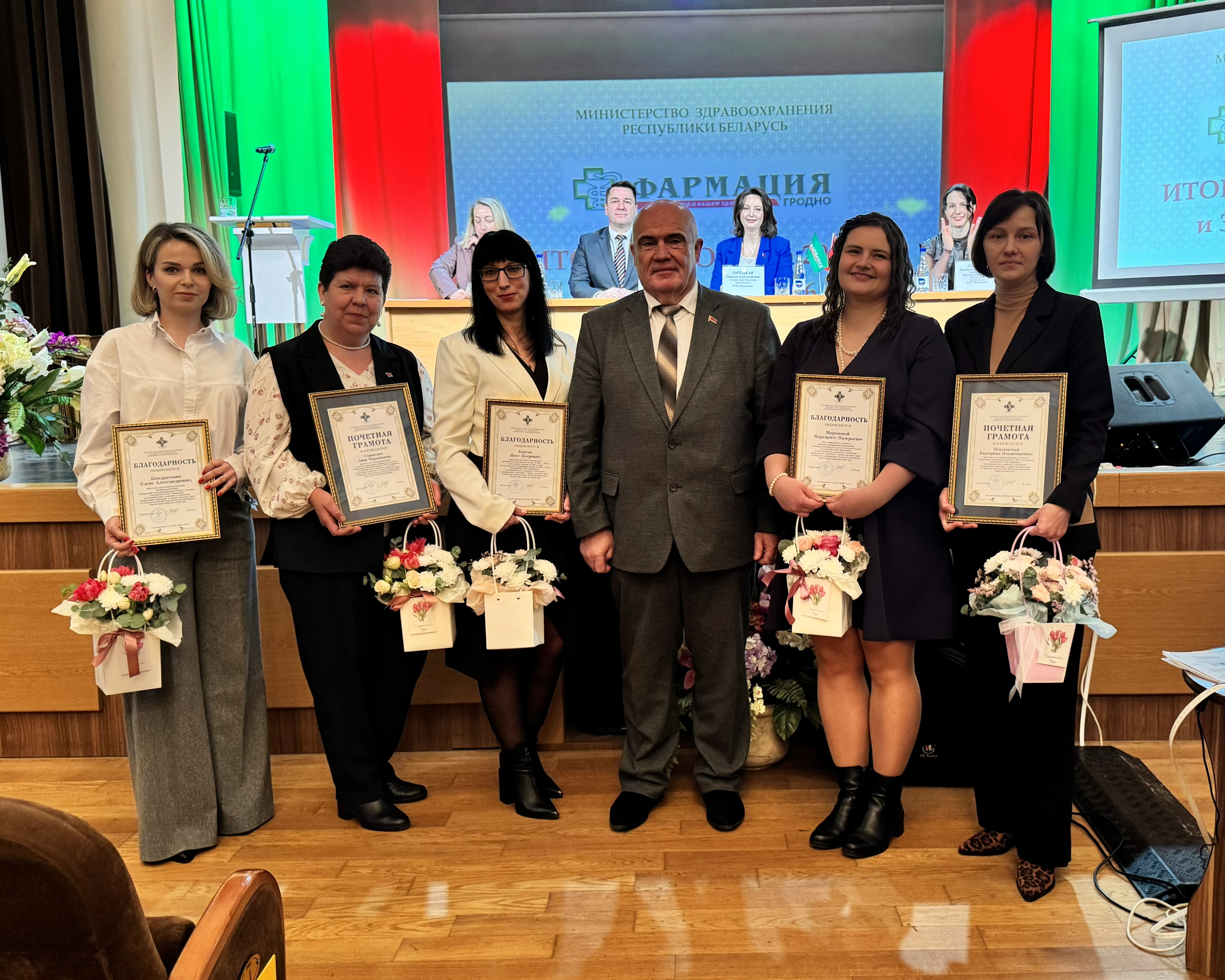 Благодарности областной профсоюзной организации удостоены председатели цеховых организаций Инга Бартис (ЦМА №146, Лида) и Елена Кондратович (ЦМА №61, Слоним), а также провизор-рецептар аптечного склада, член профкома Маргарита Миронова.