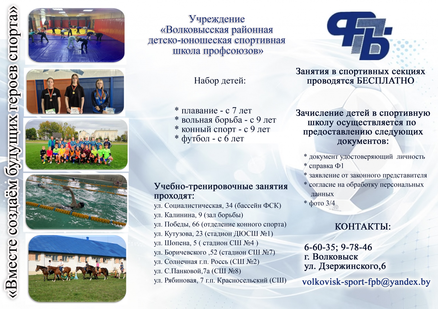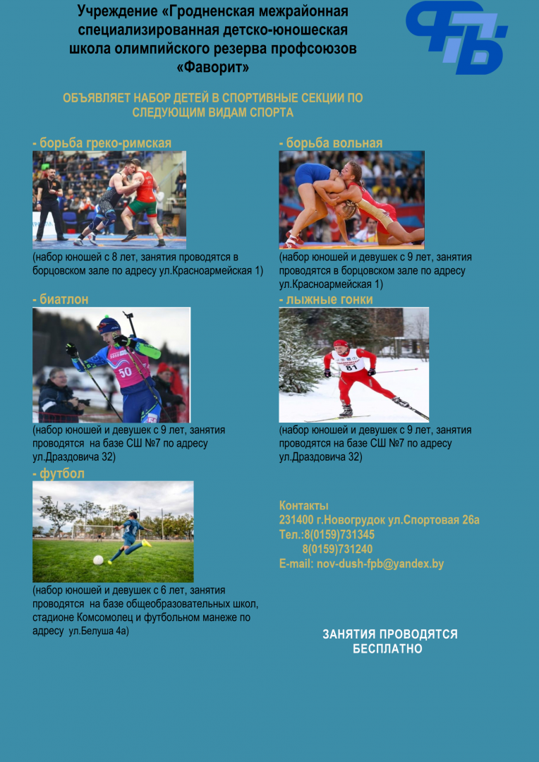 Профсоюзные спортшколы приглашают на занятия