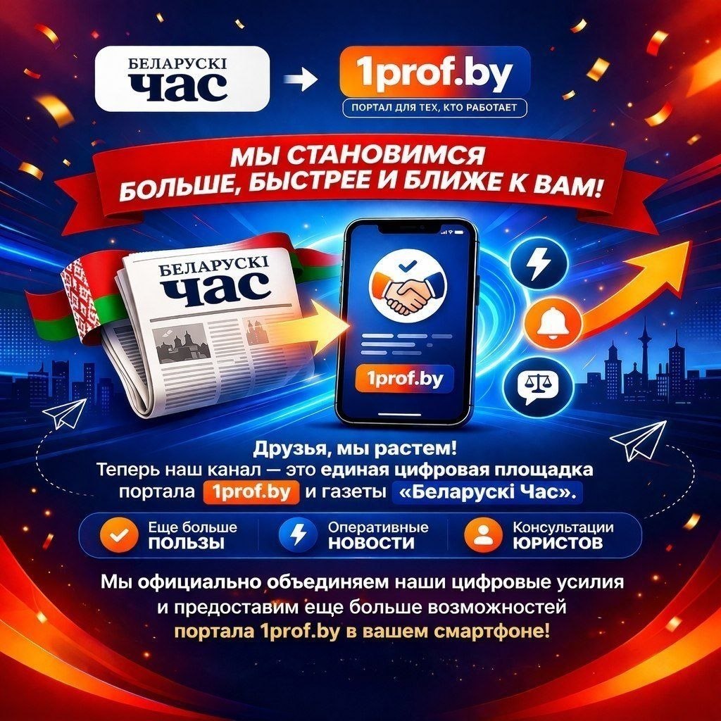 В новом канале вас ждут самые свежие новости от 1prof.by, аналитика и достоверная информация от «Беларускi Час», оперативные консультации юристов, а также полезные советы и лайфхаки.